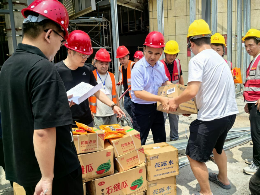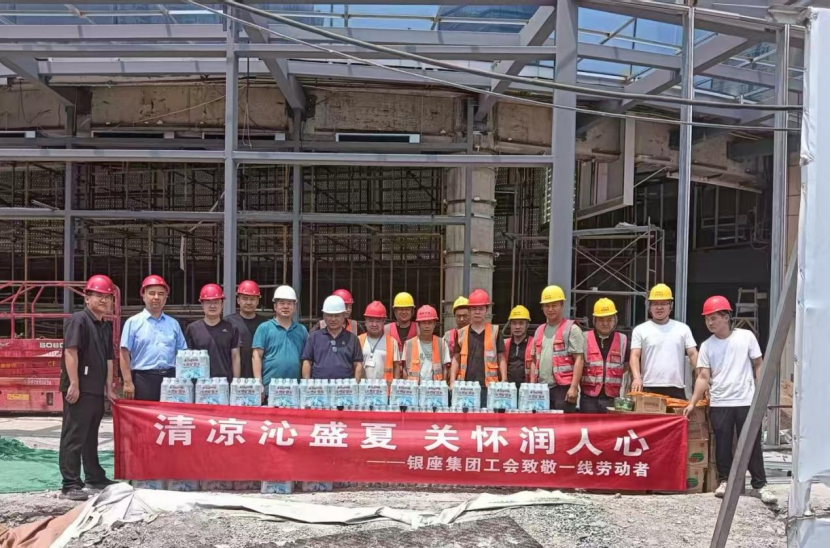 為切實保障各項目施工人員的健康與安全,7月12日,銀座集團工會組織開展了“高溫送清涼·關(guān)愛潤人心”慰問活動,為銀座物流二期、濟南銀座茂、八澗堡及濟南和諧店等項目奮戰(zhàn)在高溫下的施工管理人員和一線工人送去清涼與關(guān)懷。