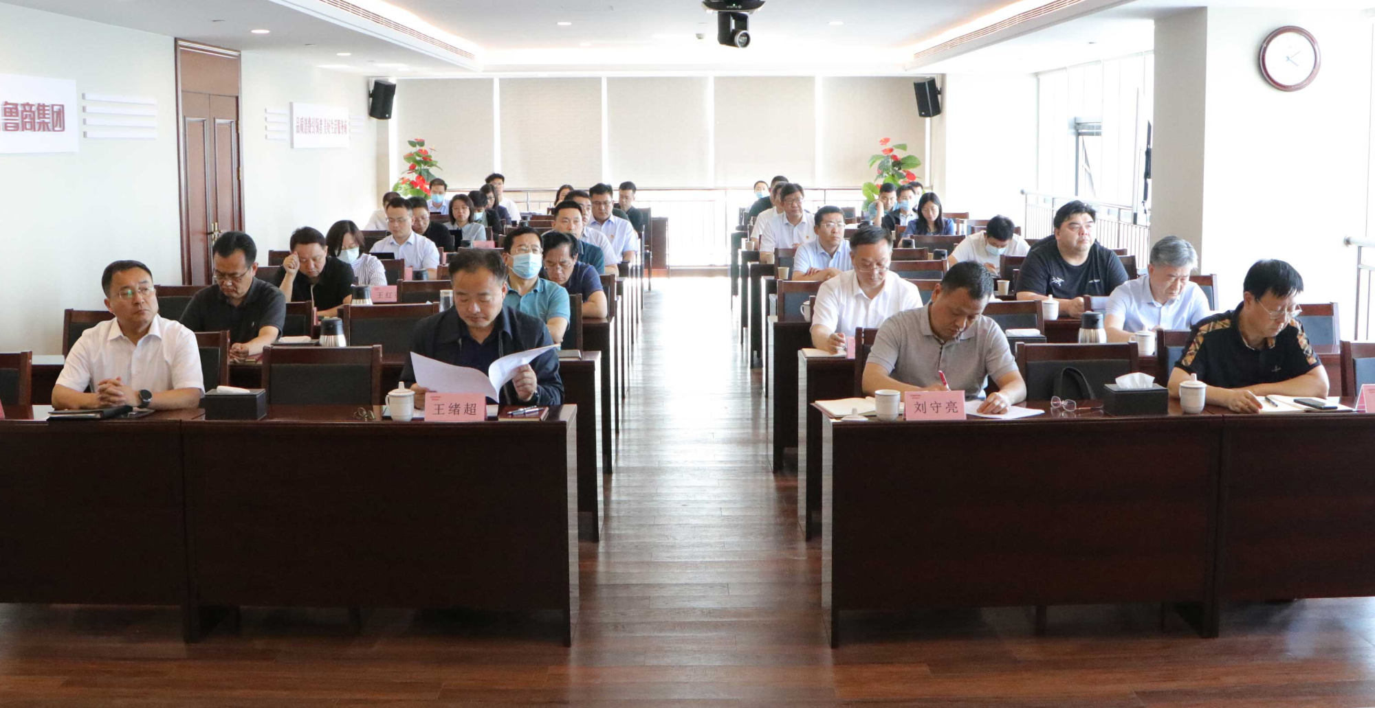 6月5日至6日,魯商集團學習貫徹習近平新時代中國特色社會主義思想主題教育讀書班(第三專題)舉辦。這次學習突出“深入學習貫徹習近平總書記關于調查研究、樹立和踐行正確政績觀的重要論述和對山東工作的重要指示要求”這一主題,將“學習掌握‘千萬工程’所蘊含的理念方法、打造鄉村振興齊魯樣板”和“學習踐行‘浦江經驗’”作為學習內容。其間,集團黨委理論學習中心組進行了集體學習,集團紀委書記為黨員干部講黨課,省委黨校教授受邀作提高調查研究能力專題授課。集團黨委書記、董事長王緒超,黨委副書記、董事劉守亮,黨委副書記、董事、副總經理朱華建,黨委常委、董事、組織人力資源部部長李林,黨委常委、紀委書記、省監委駐集團監察專員劉天海,黨委常委、董事、總審計師、工會主席劉德華參加。