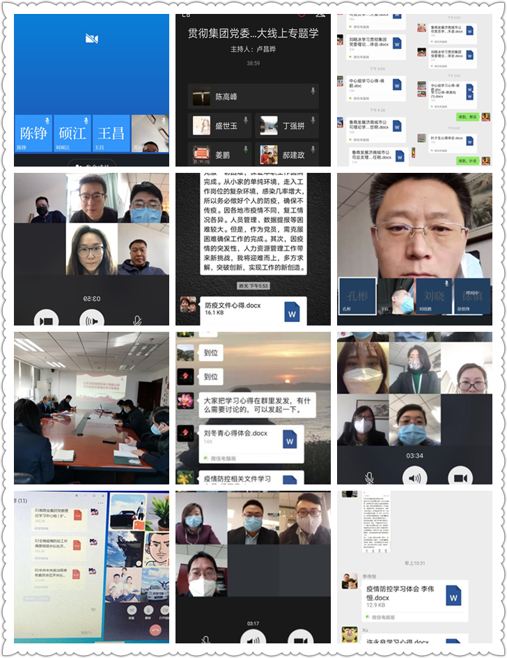 各基層黨組織迅速組織中層以上干部通過“學(xué)習(xí)強國”視頻會議、云之家、微信等方式,開展線上“主題黨日”活動。學(xué)習(xí)傳達(dá)會議精神,交流分享感悟體會,并就復(fù)工注意事項進(jìn)行全面部署。