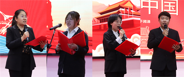 伴隨著激昂的旋律,師生們集體朗誦毛澤東詩詞《七律·長征》、《七律·人民解放軍占領南京》、梁啟超《少年中國說》選段,把誦讀活動推向高潮,現場激蕩著濃烈的愛國真情和愛黨深情。