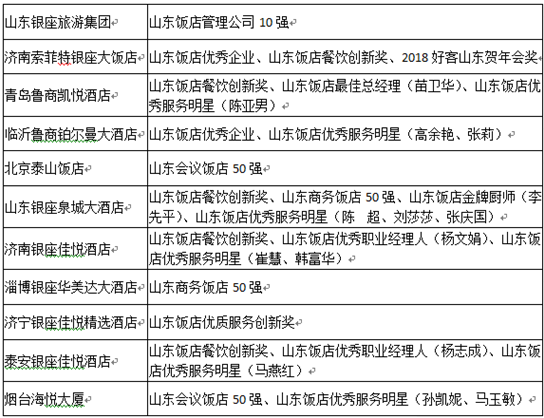 山東銀座旅游集團有限公司榮獲2017年度山東省飯店行業(yè)多項大獎