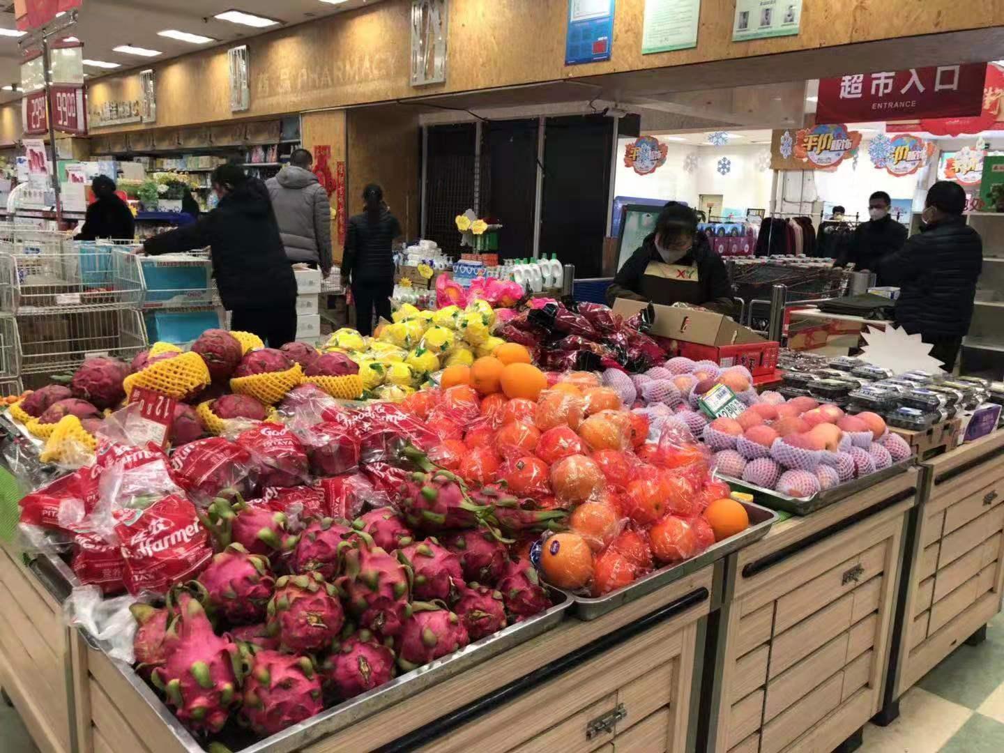 市民宋女士一次性購買了500多元的蔬菜水果。她表示,家人響應號召盡量避免出門,所以由她負責采購兩家老人的日常用菜。“價格和平時差不多,蔬菜水果的品種非常豐富,需要的基本都能買到。”