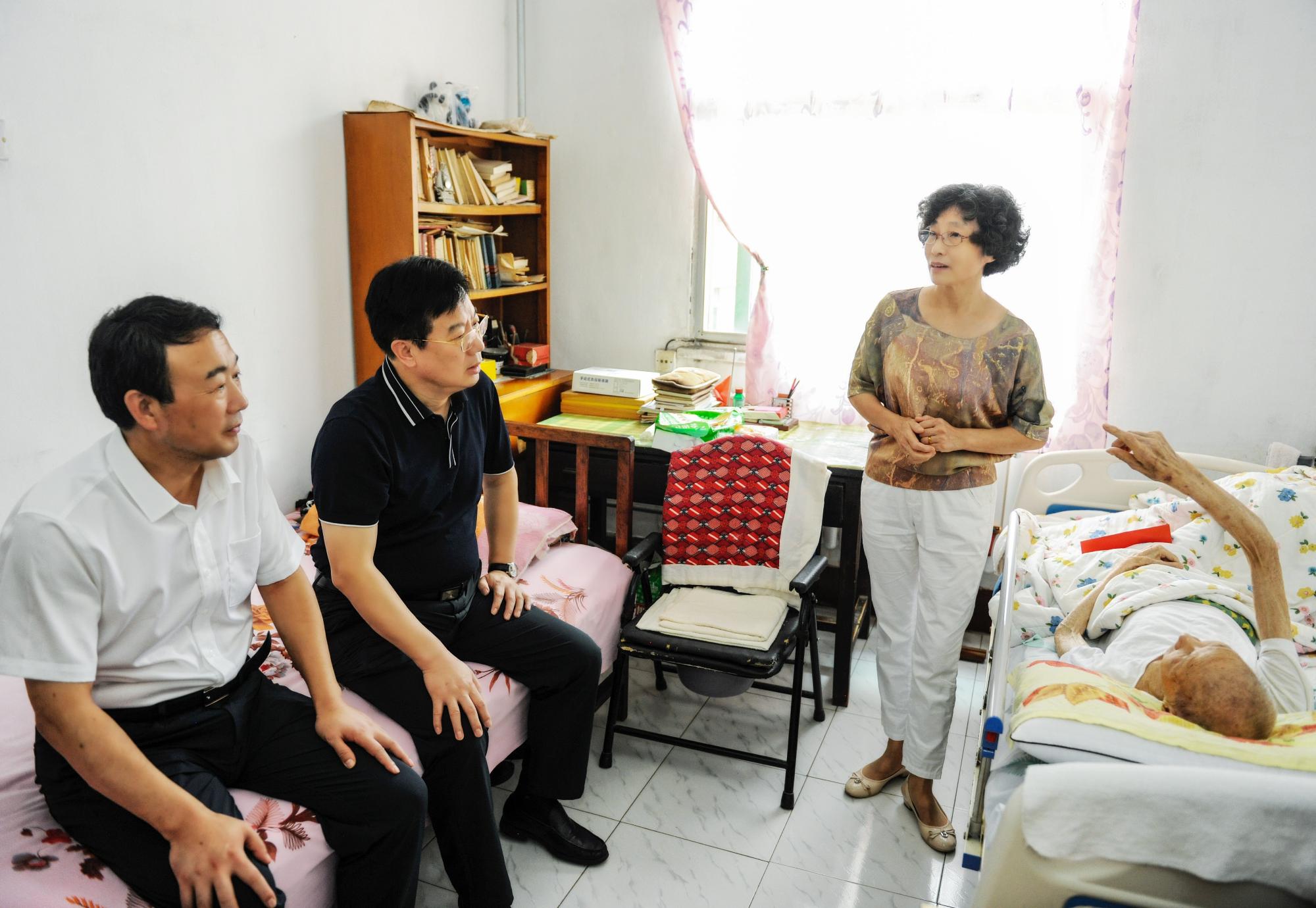 呂泌老人今年已有91歲高齡,患病癱瘓?jiān)诖玻顭o(wú)法自理。在呂泌家中,張斌向其大女兒呂元美關(guān)切地詢問(wèn)老人的身體狀況及護(hù)理情況。他說(shuō),家屬照顧老人很辛苦,有什么困難,一定要跟組織上說(shuō)。同時(shí),張斌還向老人家屬介紹了省國(guó)資國(guó)企和魯商集團(tuán)的發(fā)展情況。他說(shuō),因?yàn)橐咔椋斏碳瘓F(tuán)今年承擔(dān)了很大的壓力,一方面要穩(wěn)市場(chǎng)保障物資供應(yīng),另一方面還要為諸多商鋪?zhàn)鈶魷p免房租。盡管如此,今年上半年魯商集團(tuán)仍舊保持了良好的發(fā)展態(tài)勢(shì)。