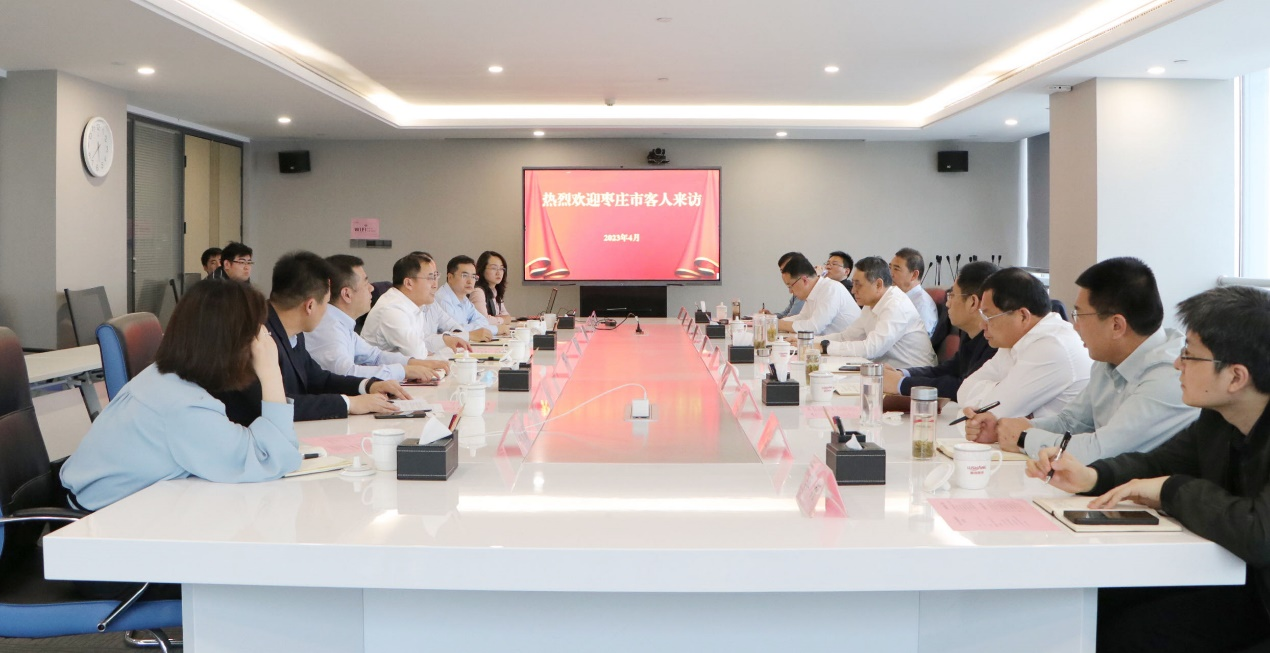 4月17日,棗莊市國資委黨委書記、主任趙琨,市農業農村局黨組書記、局長陳廣良到訪魯商集團,集團黨委副書記、董事、副總經理朱華建熱情接待并舉行座談。