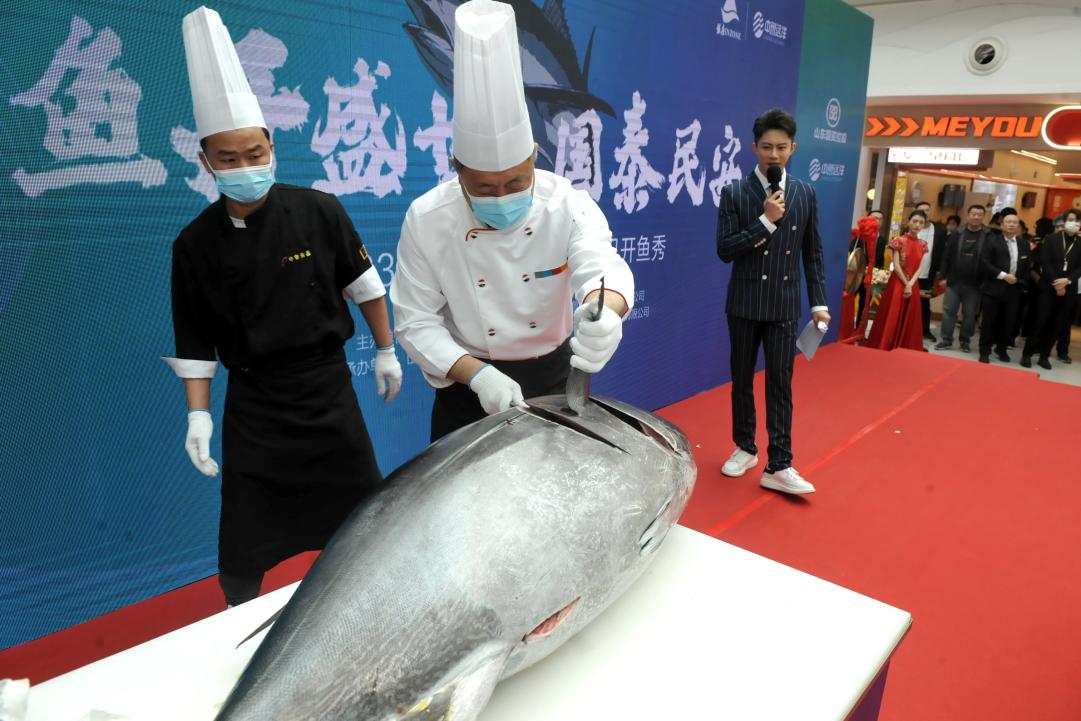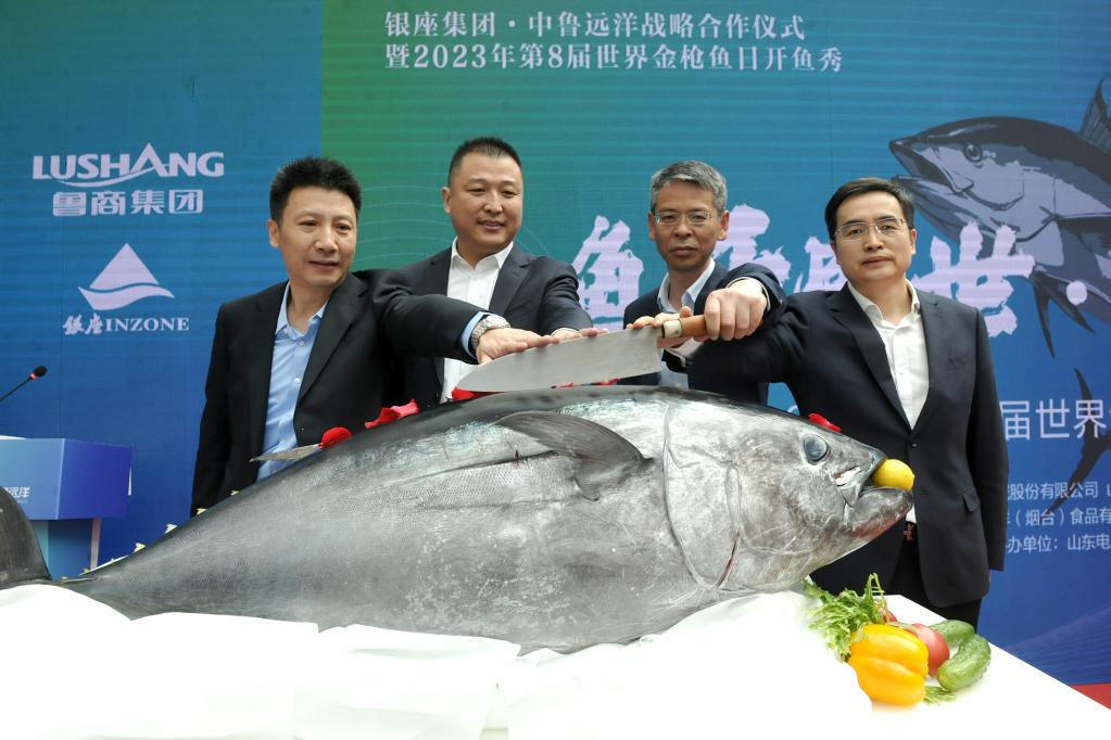 5月2日,“大道魯商?共航遠(yuǎn)洋”銀座集團(tuán)中魯遠(yuǎn)洋戰(zhàn)略合作儀式暨2023年第8屆世界金槍魚日開魚秀在濟(jì)南銀座玉函店舉行。魯商集團(tuán)黨委書記、董事長王緒超,黨委副書記、董事、副總經(jīng)理朱華建,黨委常委、董事、組織人力資源部部長李林,山東國投黨委常委盧連興出席。