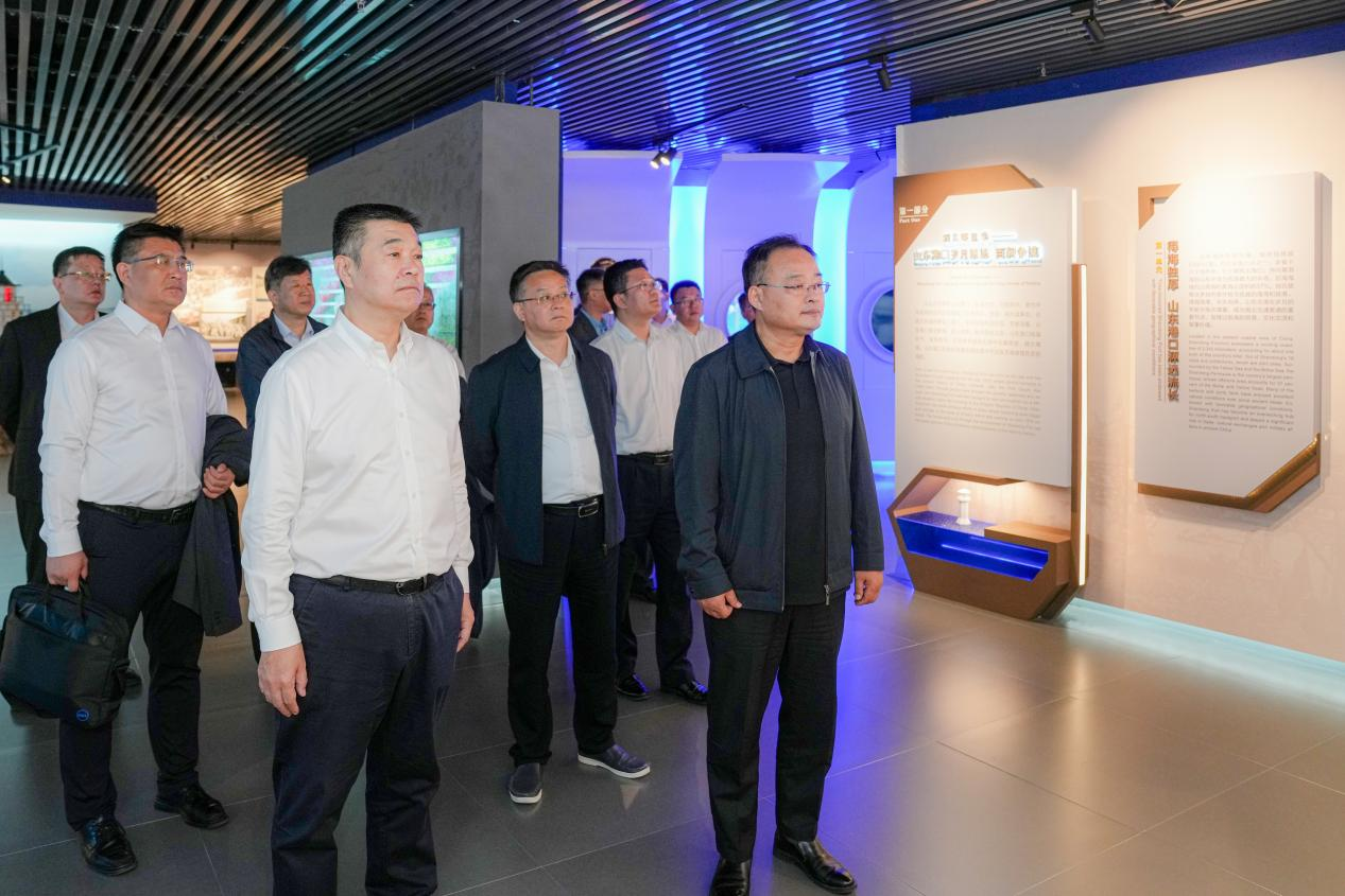 座談交流前,王緒超一行參觀了山東港口展館。