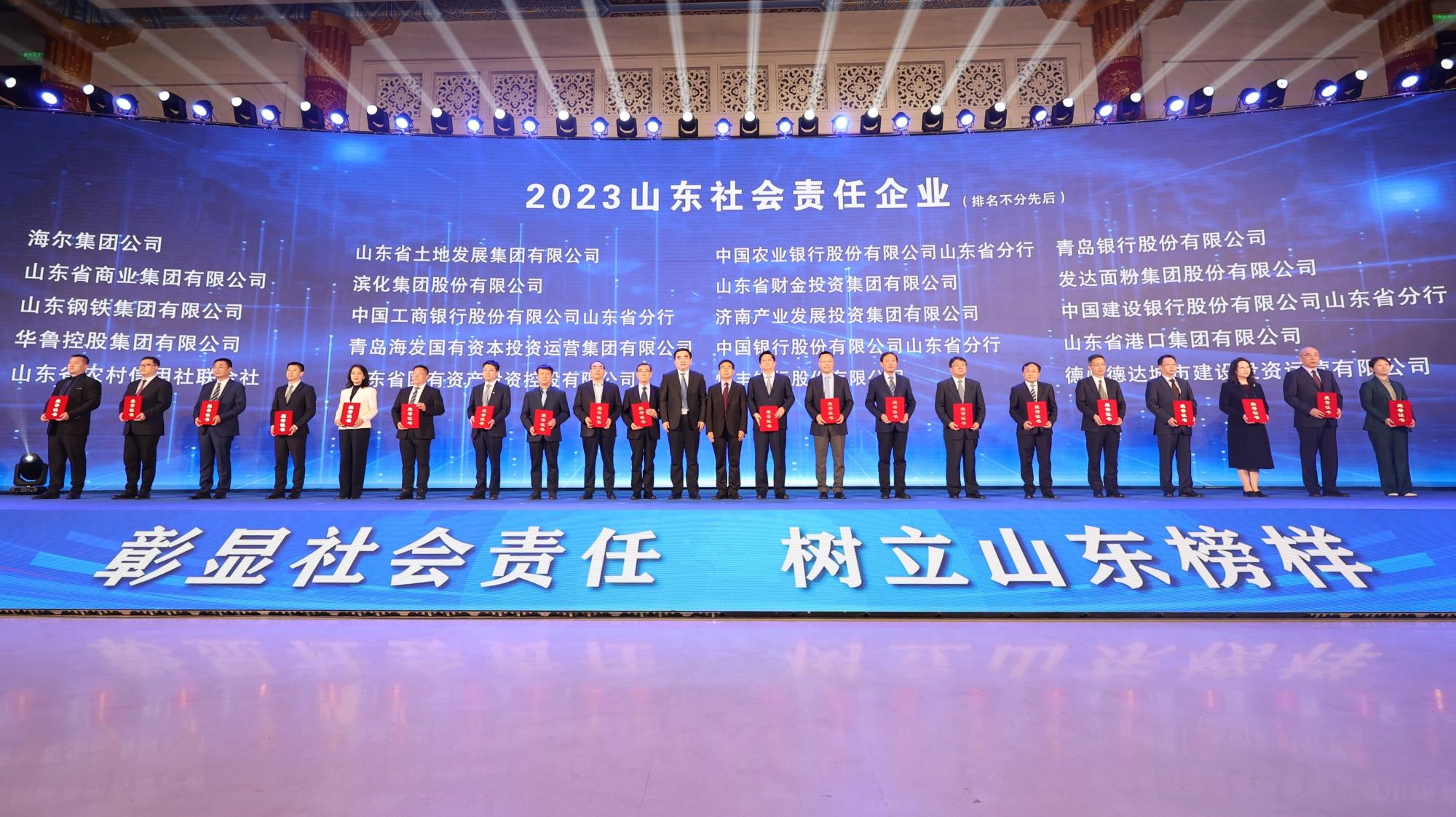 42日,由大眾報業集團(大眾日報社)、省工商聯、省國資委、省市監局、省委金融辦聯合主辦的“2023山東社會責任企業(企業家)”發布暨“2024山東社會責任企業(企業家)”推選活動啟動儀式在濟南舉行,魯商集團榮膺“2023山東社會責任企業”,集團黨委副書記、董事張洪東代表集團上臺領獎。