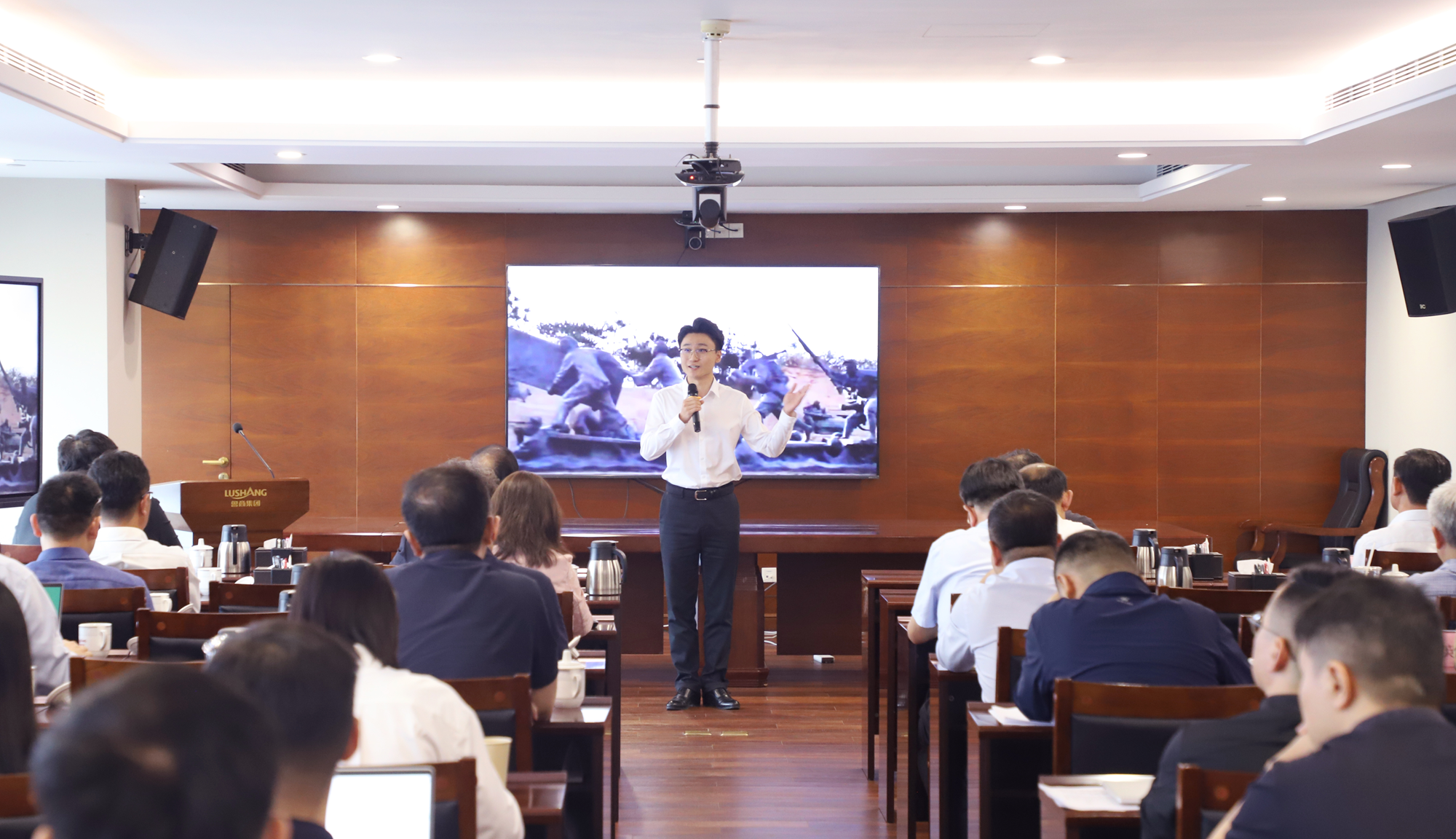 活動分專家示范宣講和員工宣講兩個環節,全面闡釋沂蒙精神的時代價值與魯商實踐。專家宣講環節中,韓延明從沂蒙精神的歷史淵源、核心內涵、時代價值等維度深入闡釋沂蒙精神代代傳“為什么”“傳什么”“怎么傳”,結合山東革命老區發展實踐與魯商集團使命擔當,為集團干部職工帶來一場兼具思想深度與實踐指導性的理論盛宴,進一步夯實了全員對沂蒙精神的認知根基。
