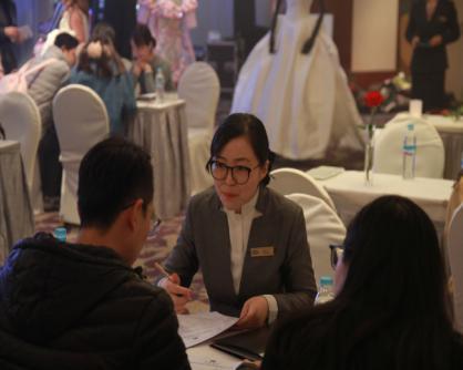 這場婚禮秀,從靈感碰撞、創意策劃到主題確定和細節敲定,都凝聚著佳悅人的智慧與汗水。前期,酒店團隊曾就此召開6次專題會,實施“頭腦風暴”,研討氛圍營造,力求從顧客的需求出發創新出彩。為保證策劃順利推進,各項工作直接落實到人,還設計“配檔表”督促推進。而面對現場每一對咨詢的準新人,佳悅人都會奉上無微不至的服務。