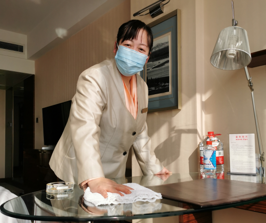 酒店為避免員工、賓客聚集增大交叉感染的風(fēng)險,減少值班留守人員。在這個人人自危的時刻,曹亞平在和家人的視頻通話中,面對苦口婆心的勸說,忍著眼眶里打轉(zhuǎn)的淚水堅持留守。掛掉視頻后,她說,“我是客房經(jīng)理,本身就是管理酒店衛(wèi)生清潔的,我比別人更了解酒店現(xiàn)在要做的清潔和消毒標(biāo)準(zhǔn),我執(zhí)行起來也更有效率,讓我留下來吧”!