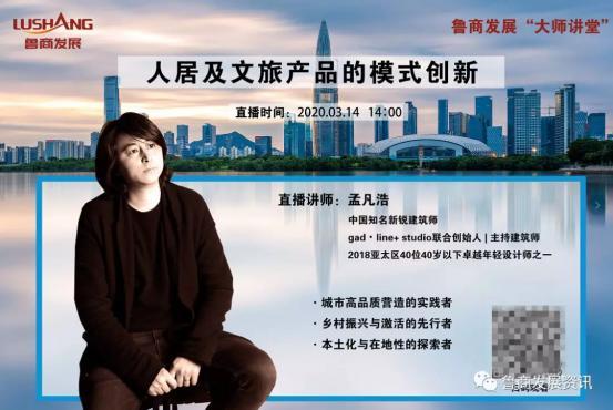 3月14日下午,魯商健康產(chǎn)業(yè)發(fā)展股份有限公司(簡稱魯商發(fā)展)“大師講堂”第三期開講,此次培訓邀請到了gad ? line+studio聯(lián)合創(chuàng)始人、主持建筑師孟凡浩主講《人居及文旅產(chǎn)品的模式創(chuàng)新》。魯商發(fā)展全體員工及魯商集團相關產(chǎn)業(yè)共6000余人參加了此次線上培訓。