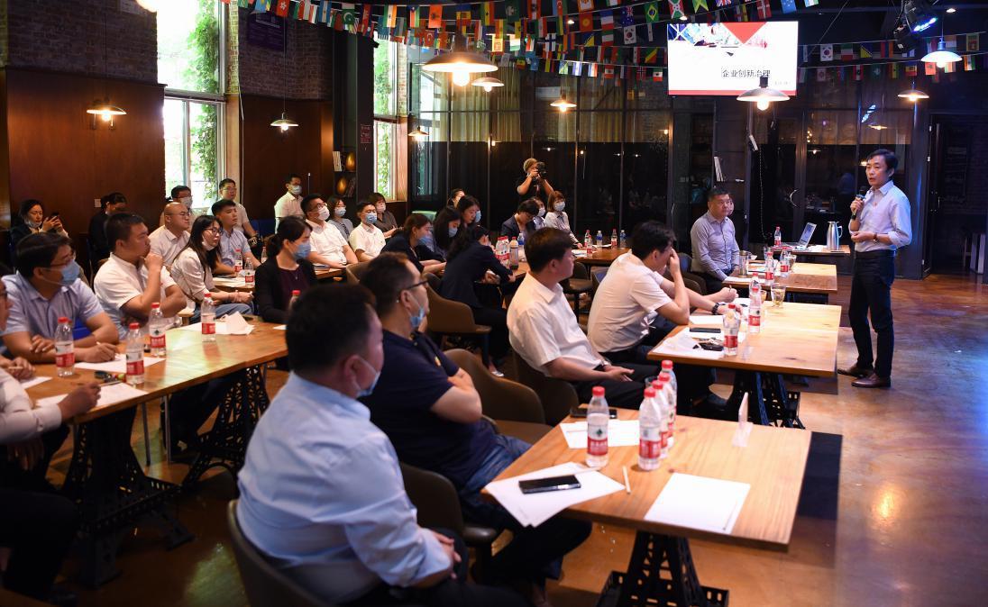 隨后,在園區(qū)開展了企業(yè)創(chuàng)新治理專題培訓,韓震以《企業(yè)創(chuàng)新治理》為題做了分享。結合鼎好集團的改革實際,韓震從企業(yè)改革的起因、企業(yè)治理四階段、企業(yè)治理的支撐、企業(yè)治理的回饋、疫情期間文化與價值的力量等5個方面作了系統(tǒng)講解,并就企業(yè)文化、股權激勵、一部四中心盈利模式打造等內(nèi)容,和與會人員進行了探討交流。