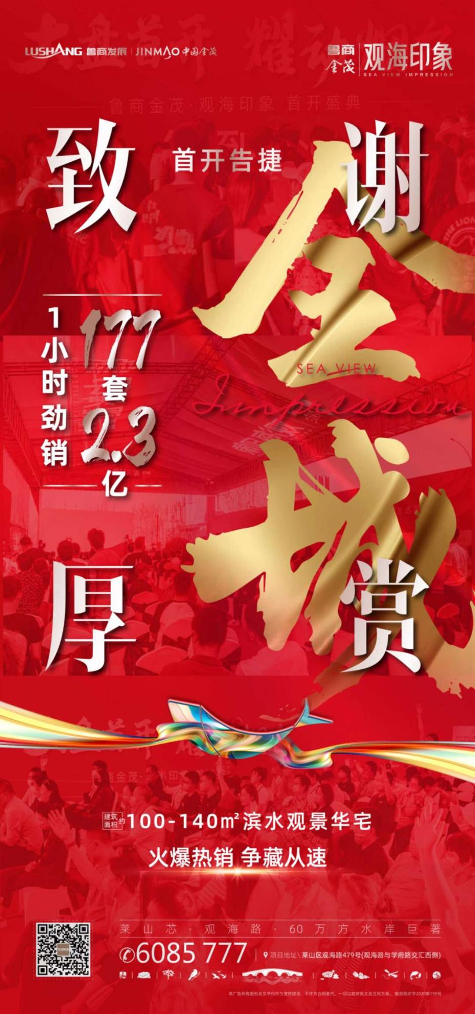 9月26日下午,魯商健康產業(yè)發(fā)展股份有限公司(簡稱魯商發(fā)展)煙臺公司魯商金茂·觀海印象盛大開盤,首開告捷,一小時的時間里勁銷177套,認購額達2.3億元,去化率優(yōu)良。