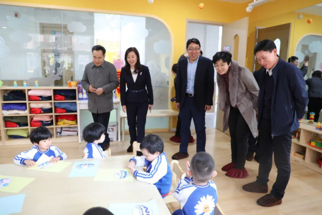 2月5日,山東省衛健委人口家庭處一級調研員崔學狀、副處長許春華,濟南市衛健委人口家庭處處長郭亞囡一行,到銀座幼教調研。銀座幼教黨總支書記、董事長袁霞,銀座幼教黨總支副書記、總園長孟凡庸陪同。