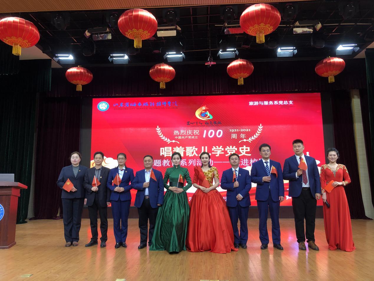 4月22日,省城市學院學術報告廳內燈光閃爍,歌聲高亢。旅游與服務系全體師生齊聚一堂,在這里舉行了一場別開生面“唱著歌兒學黨史”活動。學院黨委副書記刁洪斌出席并講話。