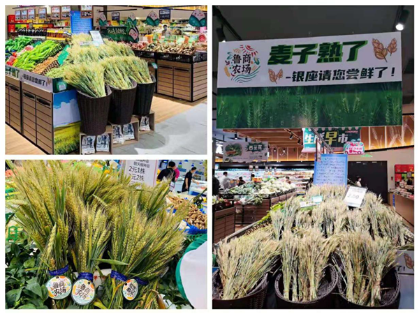 投資公司在濟南長清運營的“魯商農場”6000畝小麥到了“麥收季”。為了擴大品牌影響力,投資公司與銀座集團組成異業聯盟,于5月底在銀座超市陸續推出了2.99元/把的成熟麥穗。