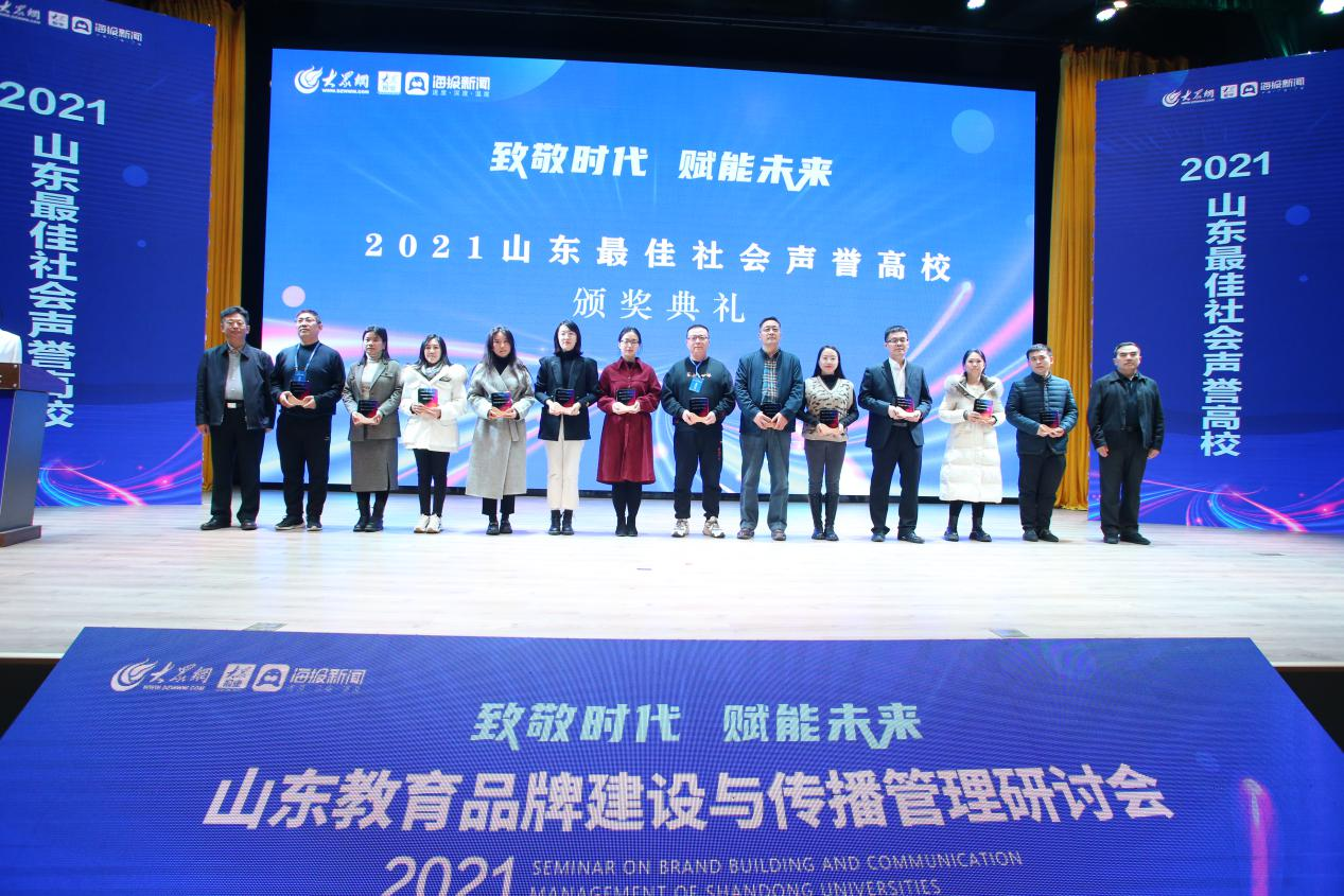 12月24日,由山東省互聯網傳媒集團主辦、泰山科技學院承辦的2021山東教育品牌建設與傳播管理研討會召開。山東商院入圍“2021山東最佳社會聲譽高校”“2021山東最具影響力教育政務融媒體”榜單。