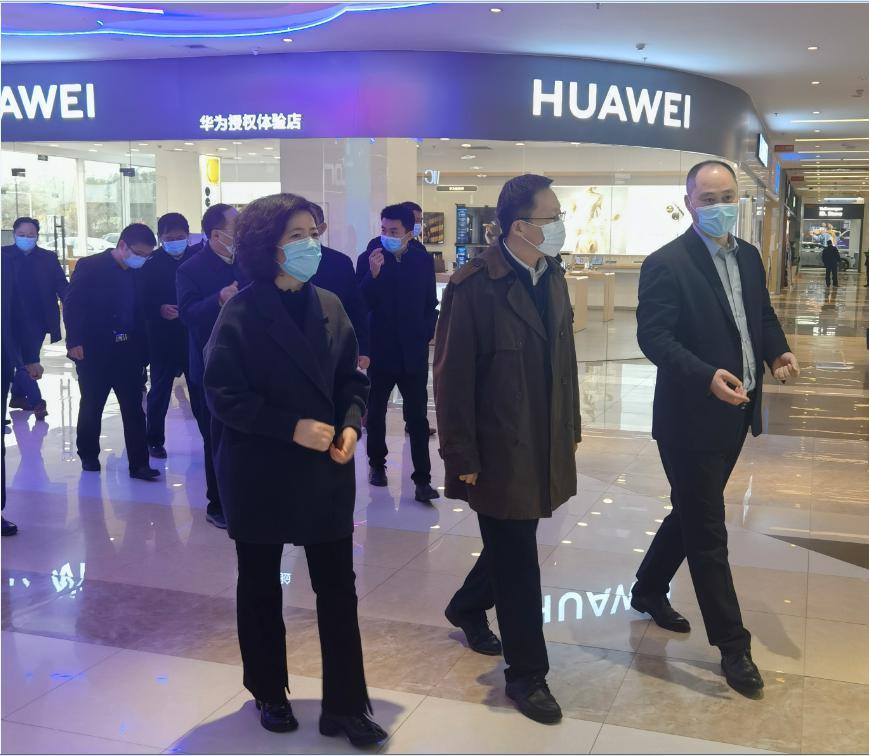 3月17日,菏澤市副市長張鵬到銀座集團(tuán)菏澤和諧廣場店督導(dǎo)抗疫保供工作,菏澤市商務(wù)局局長尹慧萍陪同。