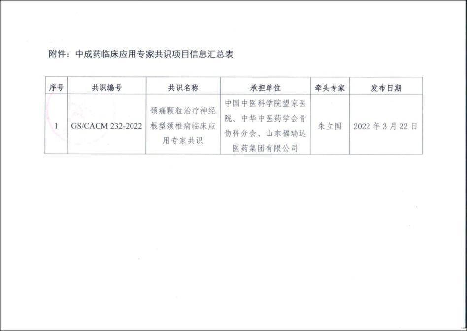 3月22日,由中華中醫藥學會骨傷科分會、福瑞達共同提出,中華中醫藥學會立項的《頸痛顆粒治療神經根型頸椎病臨床應用專家共識》(以下簡稱《頸痛顆粒專家共識》)正式發布。