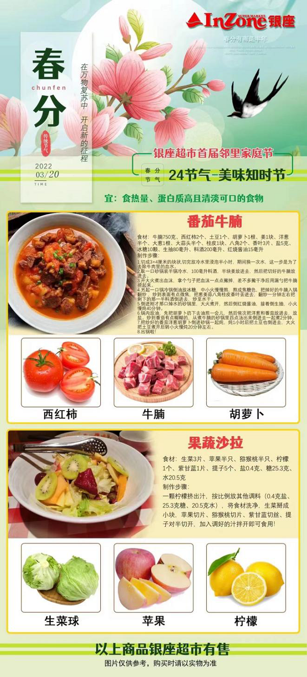 同時,各地銀座超市還根據健康專家推薦,圍繞24節氣的時令飲食文化,設計推出一整套節氣養生食譜“24節氣——銀座美味之時節”,為消費者日常飲食提供更多健康選擇。對于所需食材,銀座超市還會開辟專門的區域,配合標識,營造節日氛圍,帶來滿滿的儀式感。