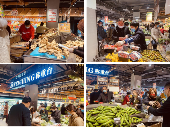 連日來(lái),面對(duì)受疫情影響客流量增大、蔬菜需求激增的情況,銀座廣場(chǎng)店迅速行動(dòng),后勤人員全部支援一線,黨員發(fā)揮模范帶頭作用,沖鋒在最苦最累的崗位,補(bǔ)貨上貨、包菜陳列、稱重裝袋、現(xiàn)場(chǎng)引導(dǎo)、線上撿單……處處都能看到黨員忙碌的身影。門(mén)店保證庫(kù)存蔬菜品類5噸,葉菜和根莖類菜等達(dá)200余種,西紅柿、黃瓜、土豆、大白菜、茄子、卷心菜等日常類一應(yīng)俱全。
