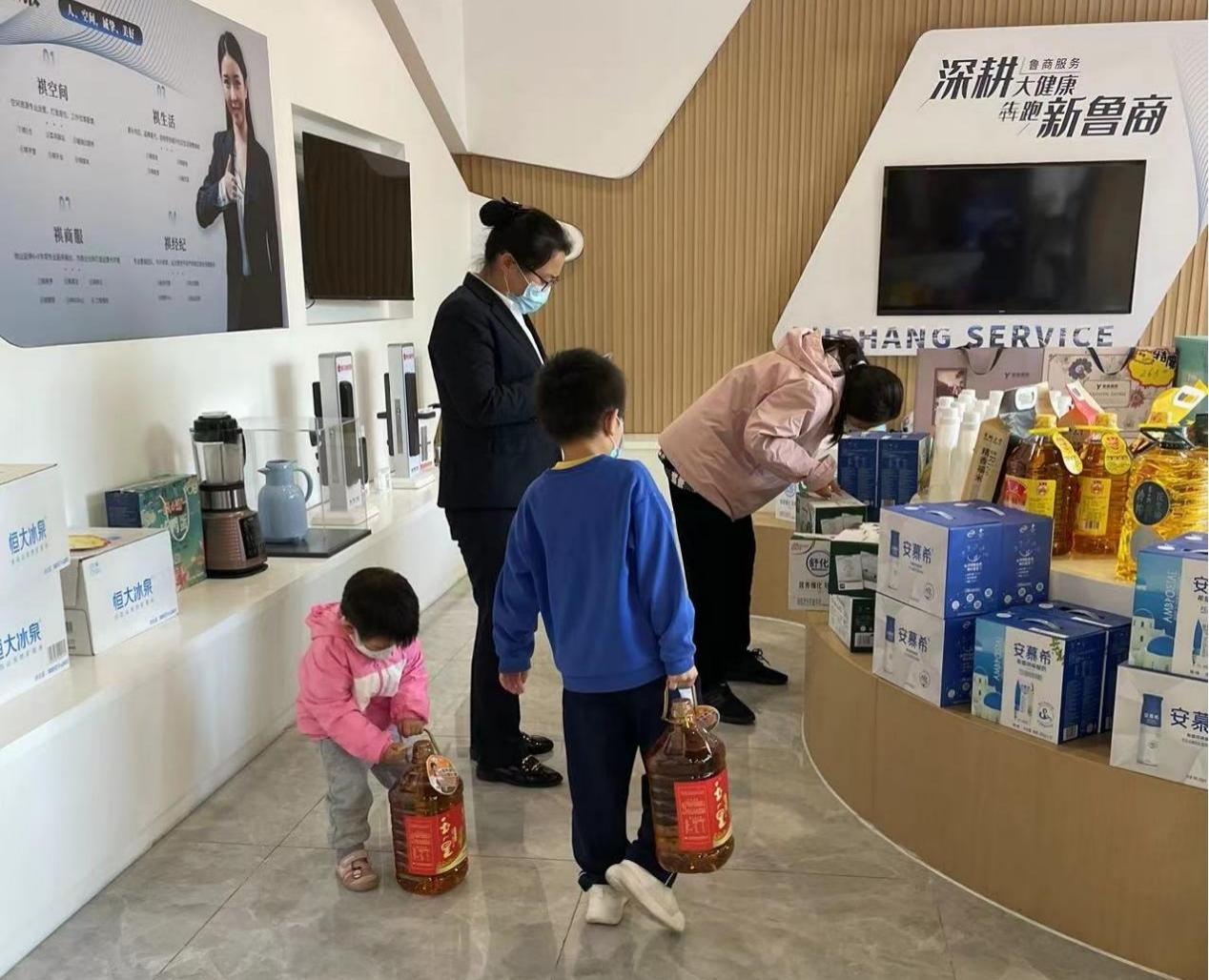 4月26日,在濟南唐冶鳳凰城小區,項目服務中心的“祺生活”體驗館準備了牛奶、蔬菜及米面糧油,以保障臨時封控期間小區業主的日常生活需求。