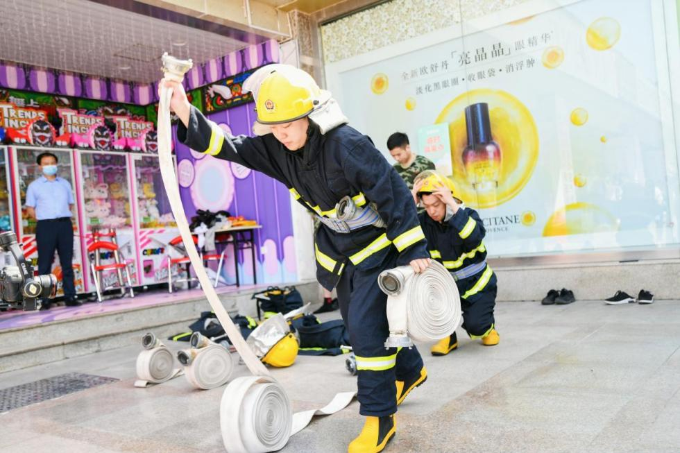 銀座濟南廣場店代表宣讀“第一責任人安全倡議書”活動方案,現(xiàn)場展示個人防護裝備穿戴、消防水帶連接、滅火器操作等技能項目,并開展應(yīng)急處置演練,充分展現(xiàn)了應(yīng)急隊伍的戰(zhàn)斗力。