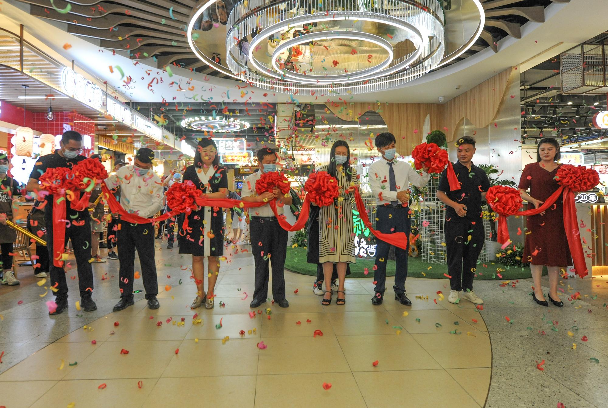 濟(jì)南市槐蔭區(qū)市場監(jiān)管局副局長張志民、濟(jì)南市槐蔭區(qū)商務(wù)服務(wù)中心副主任趙群、銀座集團(tuán)總經(jīng)理康翔、銀座濟(jì)南和諧廣場總經(jīng)理姚嵐及部分商戶代表共同出席了“食貳馬路”美食街區(qū)的開幕式并進(jìn)行了剪彩。