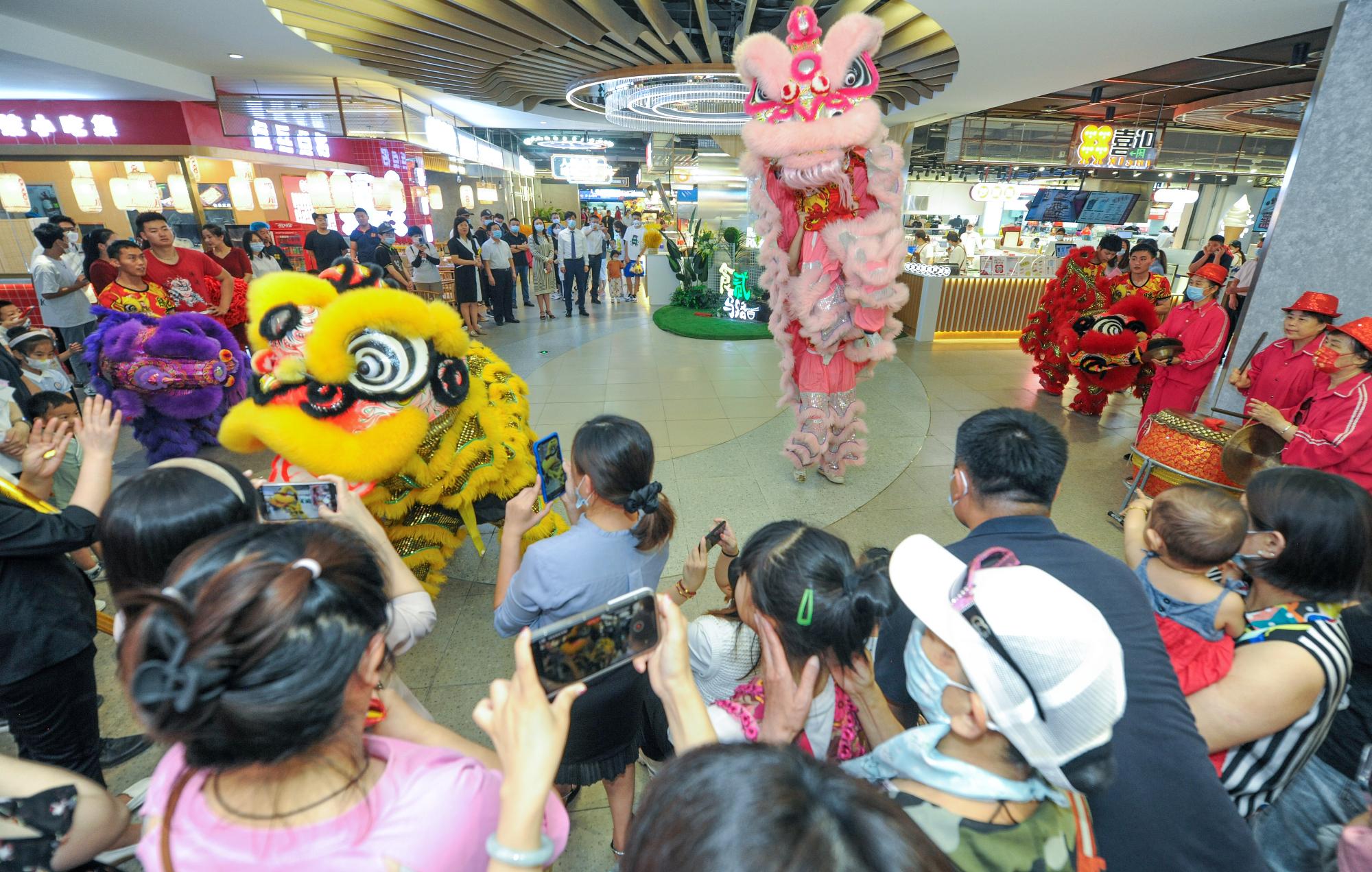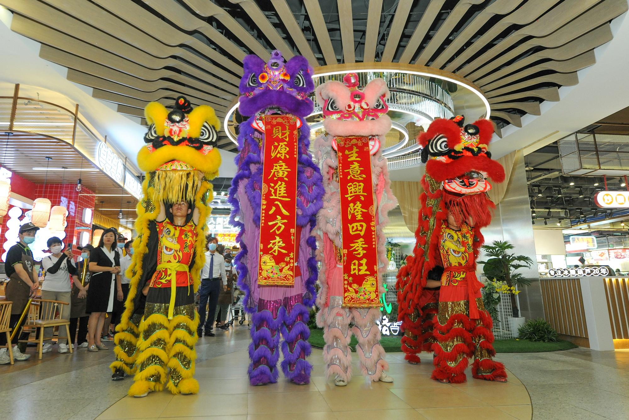 活動(dòng)現(xiàn)場,伴著鏗鏘鼓樂,精彩的醒獅表演在騰挪漫步、跳躍嬉戲中,將生龍活虎、蒸蒸日上的精氣神表現(xiàn)的淋漓盡致,引來眾多顧客的駐足和喝彩。