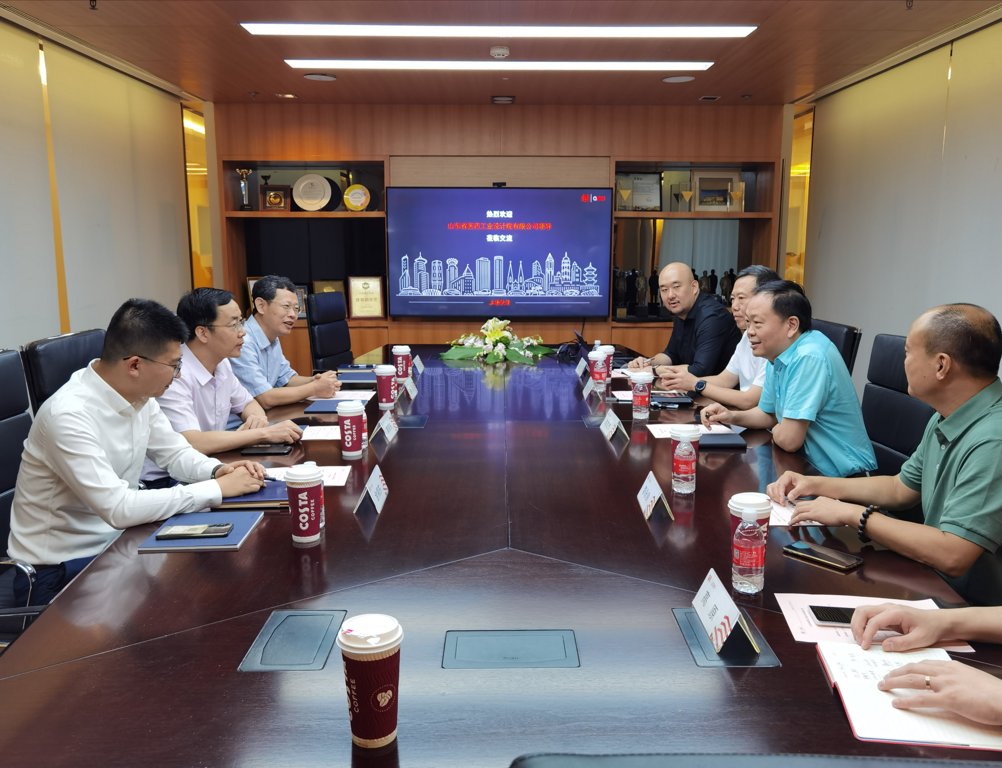 交流會上,雙方分別介紹各自的技術能力與業務開展情況,圍繞業務合作意向進行深入交流。雙方一致認為,開展業務合作有助于整合雙方在民用建筑與醫藥工業設計領域的資源優勢、技術優勢,實現“一加一大于二”的倍增效果,互利共贏,未來將進一步加強業務合作,共同承擔重大工程設計項目,實現資源共享,強強聯合。