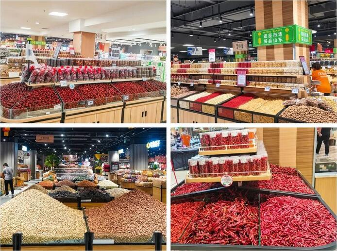 公司堅持做強自采自營,在深度分析研判市場環境及群眾消費需求的基礎上,多方采集產地信息,輾轉走訪全國多個產品原產地進行實地勘察、資料采集,在南北干貨品類方面重點打造了堅果炒貨店、山珍干貨屋、調味香料坊等主題專區,引進了全國各地特色產品80多支,包括正宗核心產區的若羌紅棗、阿克蘇核桃、中寧枸杞、蘭州百合、湘潭蓮子、貴州朝天椒、韓城大紅袍花椒、金銀花、菊花冰糖、玫瑰黑糖、益母草紅糖等,儲備了一批頗具實力的直采資源。截至10月中旬,公司濟南區域超市門店干貨品類銷售收入同比提升13%;銀座市集首家異地門店泰安市政廣場店南北干貨市集開業后,日均銷售額超10萬元,超市銷售占比超過10%,打破系統品類銷售紀錄。
