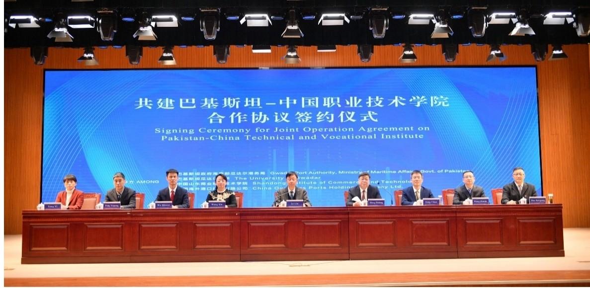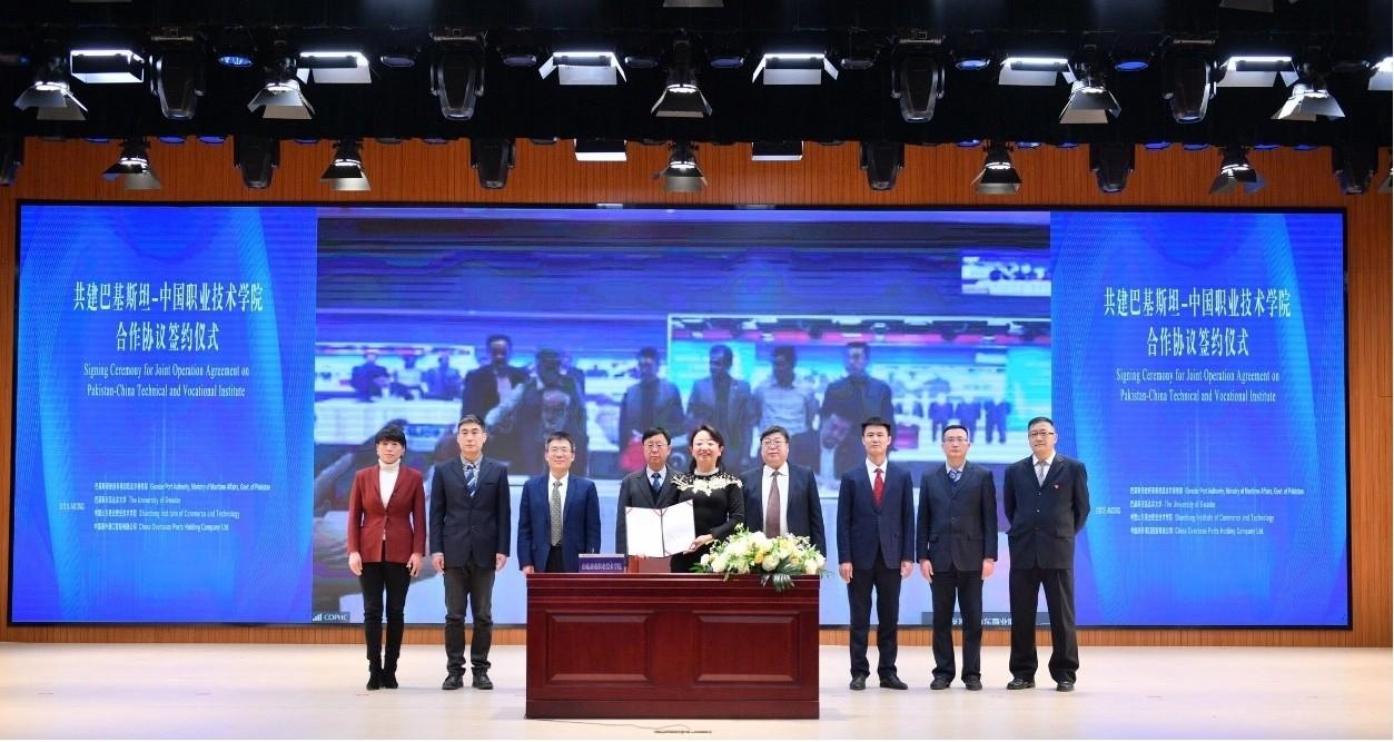 1月9日,山東商院與巴基斯坦海事部瓜達爾港務局、巴基斯坦瓜達爾大學、中國海外港口控股有限公司共建的巴基斯坦-中國職業技術學院(以下簡稱巴中職院)合作協議簽約儀式通過線上方式在山東濟南和巴基斯坦瓜達爾港同步舉行。瓜達爾港務局主席帕桑德·汗·布萊迪,魯商集團黨委常委、董事、組織人力資源部部長李林,山東商院黨委書記張志東,黨委副書記、院長王鑫,瓜達爾大學副校長阿巴杜·拉扎克·薩比爾,中國海外港口控股有限公司名譽董事長張保中、董事長于博等出席簽約儀式。