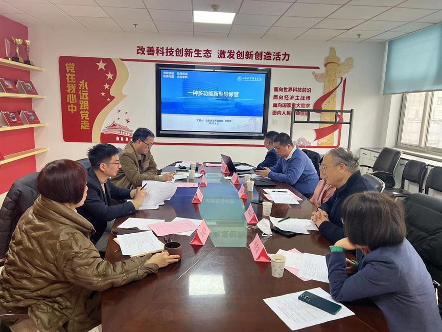 會議邀請來自山東大學第二醫(yī)院、中國科學院蘇州生物醫(yī)學工程技術(shù)研究所山東工程技術(shù)研究室、濟南國科醫(yī)工科技發(fā)展有限公司、濟南生物醫(yī)藥產(chǎn)業(yè)研究院的專家學者根據(jù)企業(yè)意向需求,分別從項目類別、設備投入、投資預算、市場預測、成本回收期限等方面對包括省藥科院科研項目在內(nèi)的10項科技成果進行深入分析,向項目持有者提出改進建議,幫助企業(yè)解決卡脖子問題。省藥科院科協(xié)向與會專家介紹了省藥科院的科研情況、相關(guān)研究方向和現(xiàn)有項目技術(shù)。