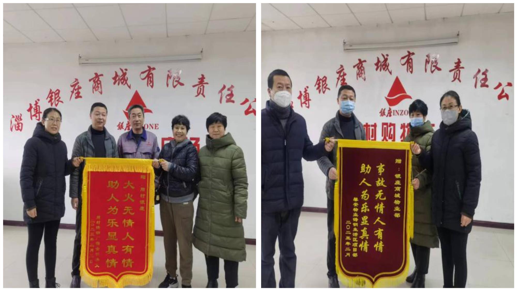銀座員工臨危不懼和見義勇為的義舉讓小區(qū)居民贊不絕口,得到了區(qū)消防大隊的高度認(rèn)可,稱贊他們面對突發(fā)火情處置得當(dāng),保護(hù)了人民群眾的生命和財產(chǎn)安全。2月10日,鑄鋼廠小區(qū)物業(yè)及居民代表送來錦旗表示感謝。