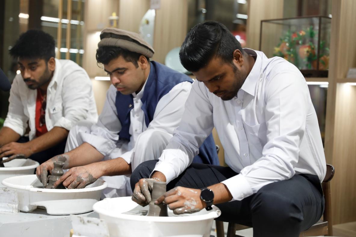 近日,來自巴基斯坦、孟加拉國、也門等國家的16名山東商院外籍師生參觀山東老字號暨非遺文化體驗(yàn)館,在專業(yè)老師的指導(dǎo)下,了解并體驗(yàn)陶瓷拉胚、魯繡、掐絲琺瑯、手工和香等非遺項(xiàng)目。