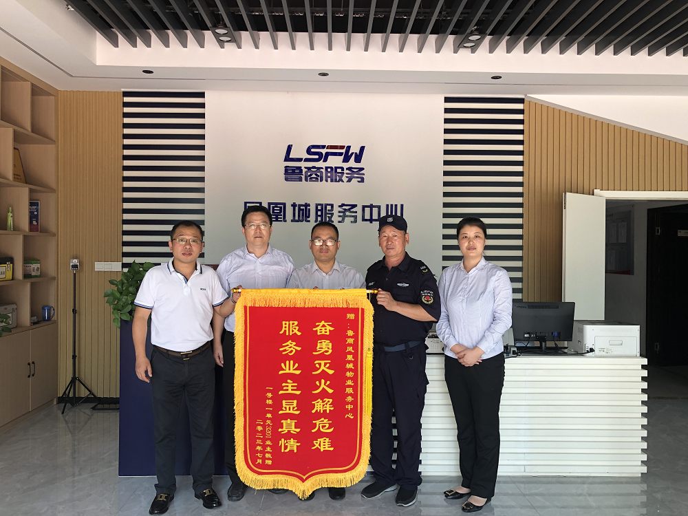 7月17日,魯商服務唐冶鳳凰城業主王先生為社區物業服務中心送來一面錦旗,感謝項目工作人員及時發現火情并奮勇滅火。