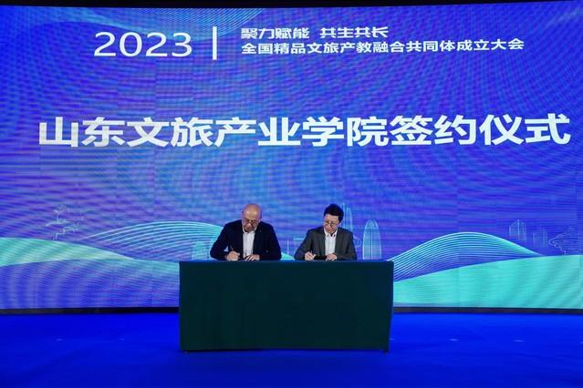 11月18日,青島酒店管理職院聯合山東文旅集團、中央民族大學發起的全國精品文旅產教融合共同體成立大會在山東濟南舉行省文旅廳黨組成員、副廳長孫蕾,省國資委黨委委員、副主任、財務監管處處長秦春玲,省教育廳職業教育處副處長郭慶志,山東文旅集團黨委書記、董事長丁藝,中央民族大學校長助理韋達提·米吉提,青島酒店管理職院黨委書記李達副校長張宗國出席大會。