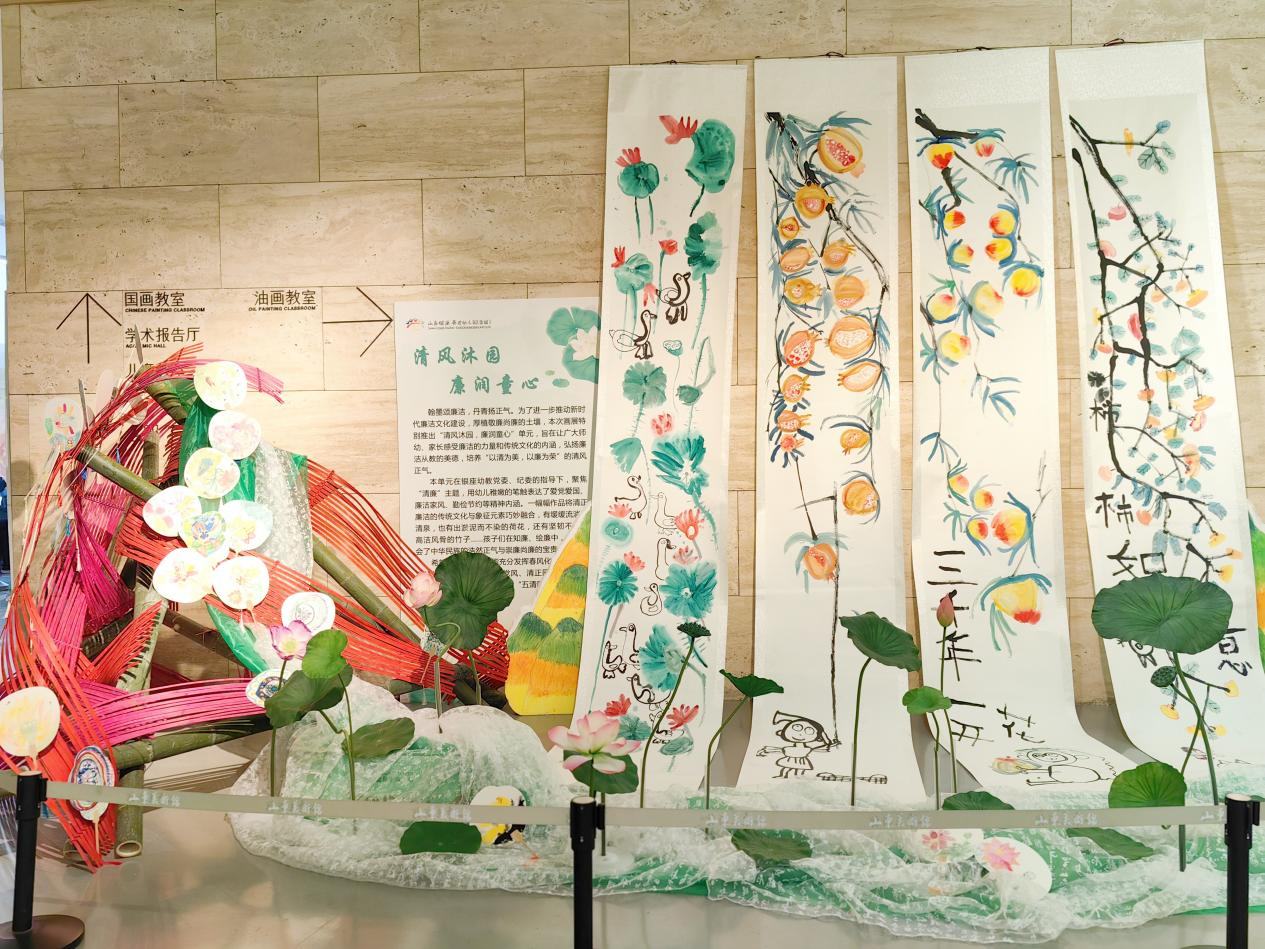 畫展特別推出“清風(fēng)沐園,廉潤童心”單元,聚焦“清廉”主題,用幼兒稚嫩的筆觸表達(dá)愛黨愛國、廉潔家風(fēng)、勤儉節(jié)約的精神內(nèi)涵。