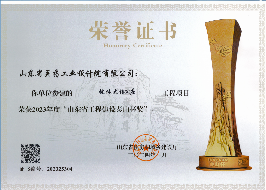 近日,省住房和城鄉建設廳公布了“2023年度山東省工程建設泰山杯獎獲獎名單”,省醫工院參建的榮昌生物制藥(煙臺)股份有限公司抗體大樓K座項目榮獲2023年度“山東省工程建設泰山杯獎”。