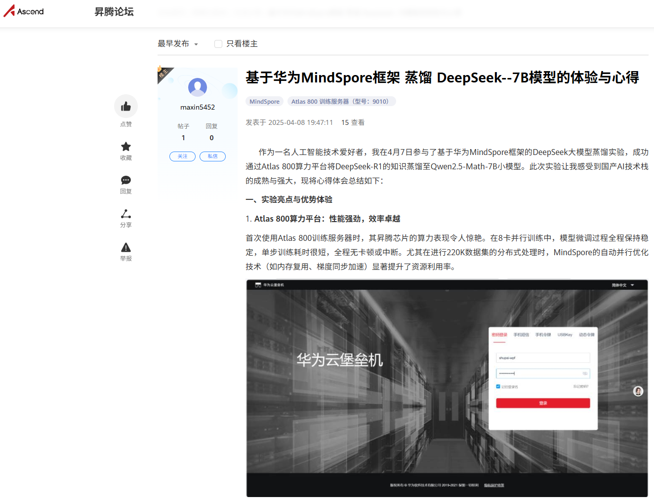 本次實驗由云計算技術與應用系ICT學習小組牽頭完成,實驗人員通過蒸餾技術將DeepSeek滿血版模型的能力進行了遷移,生成了輕量版的DeepSeek蒸餾模型,使得DeepSeek模型在中小企業應用場景也能順暢運行。實驗還結合昇騰芯片的自主算力優勢與MindSpore框架的兼容性,顯著提升了DeepSeek模型在邊緣計算場景的部署效率。這一實踐不僅驗證了國產技術棧的協同效能,也為行業提供了低成本、高靈活性的AI解決方案。