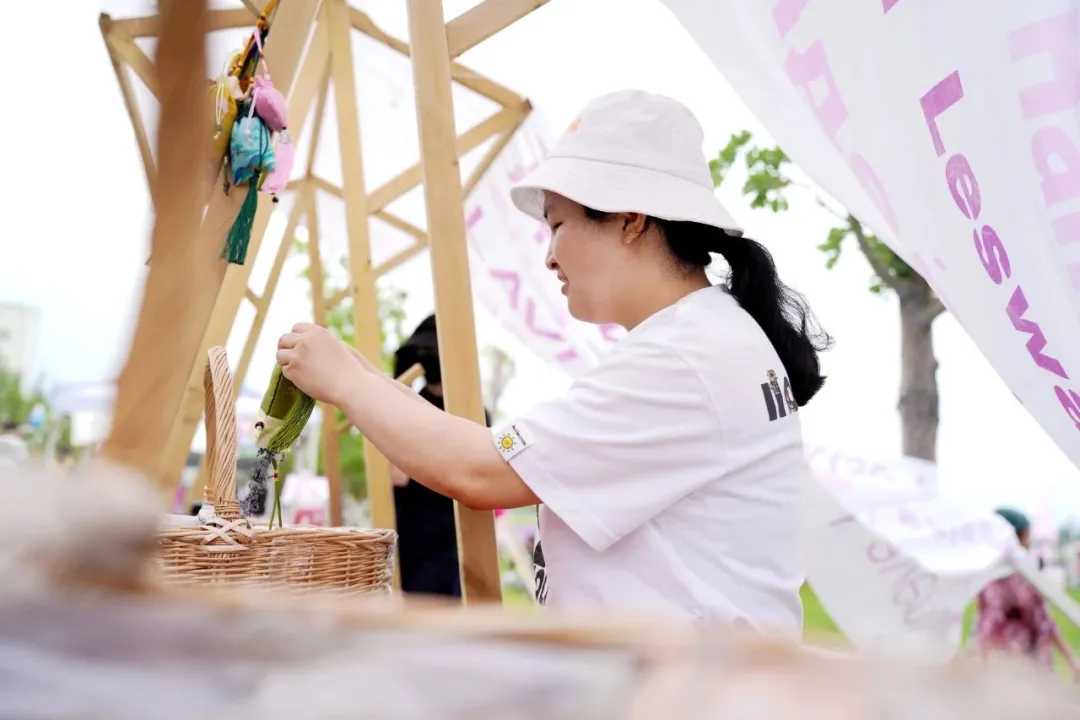 在伊帕爾汗薰衣草文化產業園的活動現場,手作與浪漫的邂逅分外精彩,一針一線繡出的民族紋樣刺繡、色彩斑斕的創意編織品,每一件都是傳統文化與生活美學的生動注腳;緊鄰的“薰衣草文創展”則以“香”為核心,伊帕爾汗旗下的香薰精油、天然護膚禮盒、薰衣草元素銀飾等文創產品整齊陳列,從嗅覺到視覺,全方位傳遞薰衣草的治愈力量。最受親子家庭和年輕群體期待的當屬“手工藝作坊”——現場提供薰衣草香包、手工皂制作體驗,觀眾可親手將新鮮薰衣草填入棉麻包,或調和精油制作專屬香皂,讓這份“可帶走的浪漫”成為旅程的獨特記憶。