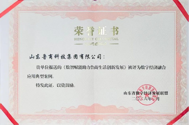 近日,山東省數字經濟發展聯盟公布數字經濟融合應用典型案例,魯商科技報送的《數智賦能助力魯商生活創新發展》案例成功入選。