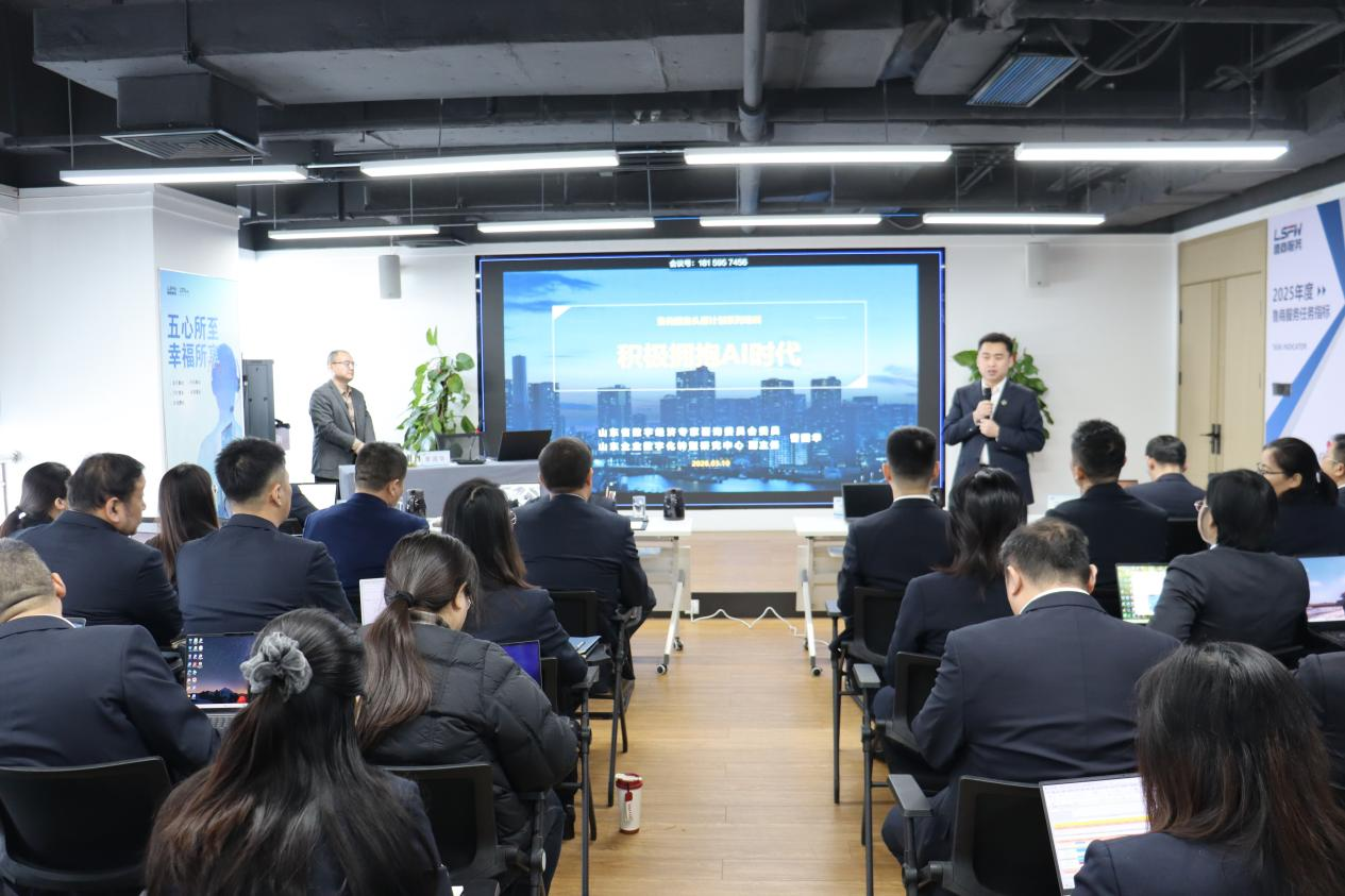 3月10日上午,魯商服務“頭雁計劃”系列培訓首期課程——《積極擁抱人工智能時代》專題培訓正式開講。本次培訓聚焦企業數字化轉型核心需求,全面提升管理團隊數字化素養與創新思維,夯實數字化轉型人才支撐,以“頭雁領航”帶動整體人才隊伍能力提升,為公司高質量發展注入科技動能。