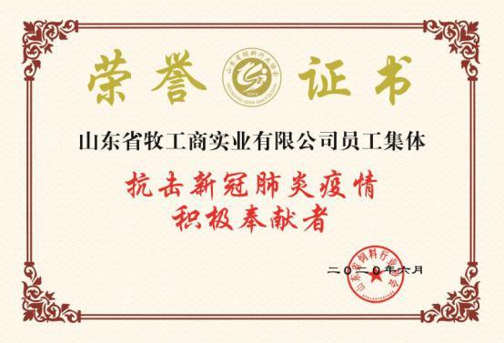 日前,牧工商被山東省飼料行業(yè)協(xié)會授予“抗擊新冠肺炎疫情積極奉獻者”稱號。