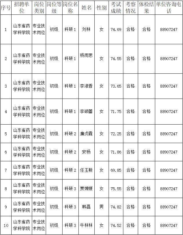 山東省藥學科學院2023年公開招聘初級崗位擬聘用人員公示
