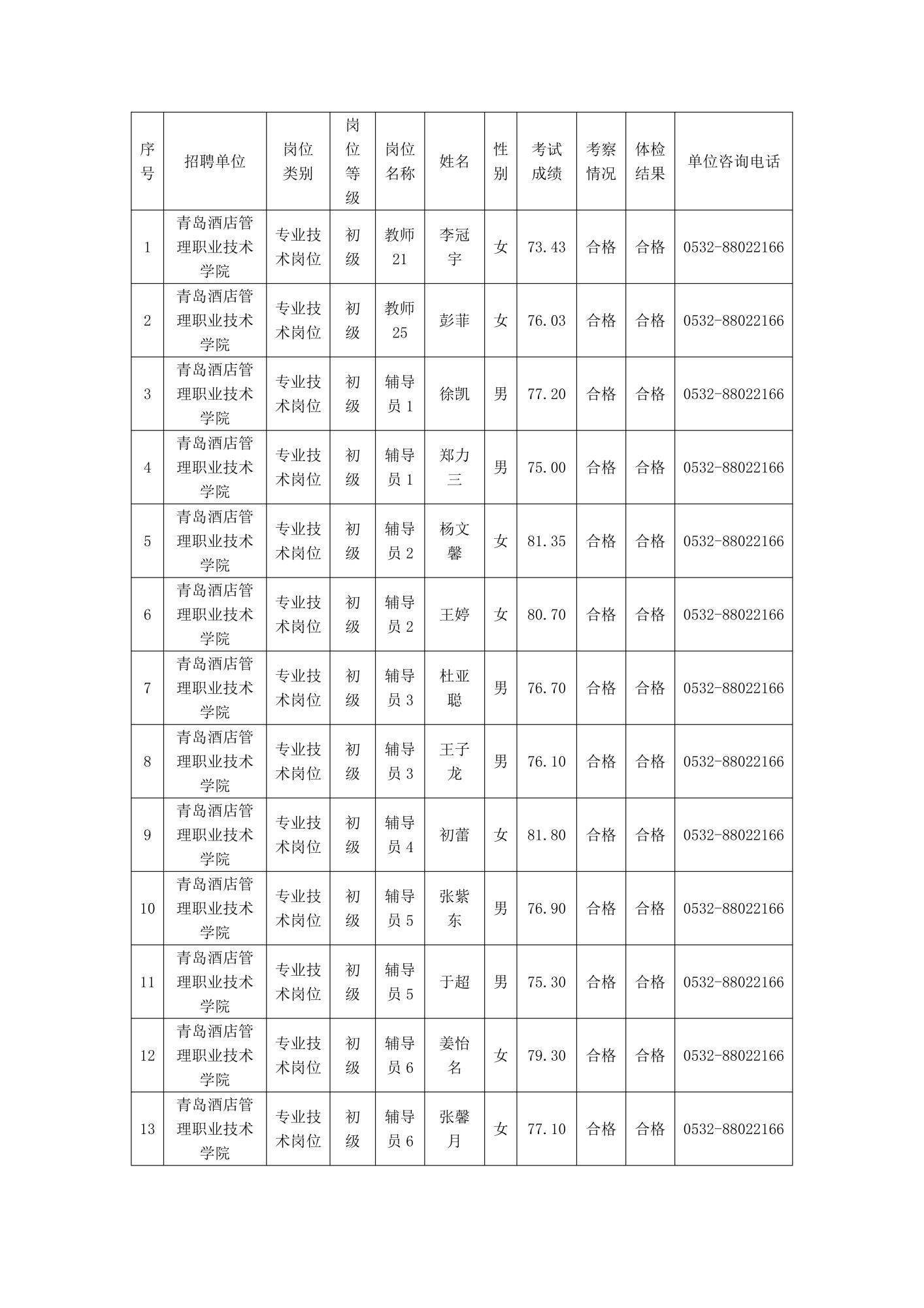 青島酒店管理職業(yè)技術(shù)學院2024年公開招聘擬聘用人員公示名單(第二批)