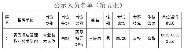 青島酒店管理職業技術學院 2024年公開招聘擬聘用人員公示名單 (第五批)