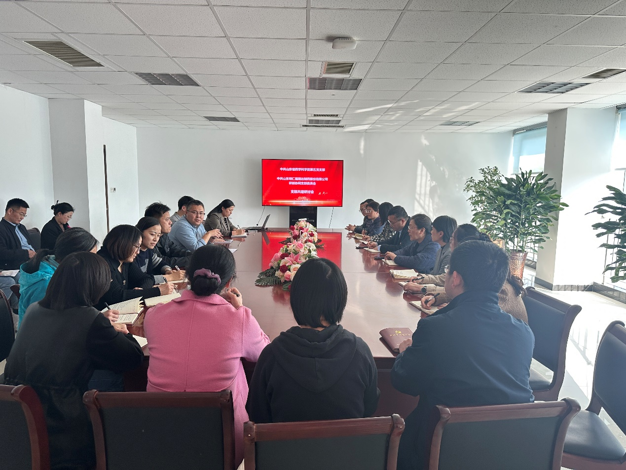 參觀結(jié)束后,雙方黨員聚焦集團(tuán)改革發(fā)展戰(zhàn)略,圍繞“思想大解放、作風(fēng)大轉(zhuǎn)變、 績(jī)效大提升”,開展了座談交流,并就魯商集團(tuán)醫(yī)藥板塊研發(fā)一體化在研項(xiàng)目進(jìn)行了深入溝通。以科技成果轉(zhuǎn)化的”為切入口,圍繞中試放大、工藝驗(yàn)證等核心環(huán)節(jié)遇到的問題開展交流研討。雙方表示將進(jìn)一步提升工作作風(fēng),共同建立“需求共提、難題共解”的常態(tài)化合作機(jī)制,構(gòu)建“支部聯(lián)建、人才聯(lián)育、項(xiàng)目聯(lián)創(chuàng)”的三維合作體系,加快實(shí)驗(yàn)室成果轉(zhuǎn)化為高質(zhì)量發(fā)展動(dòng)力的步伐。